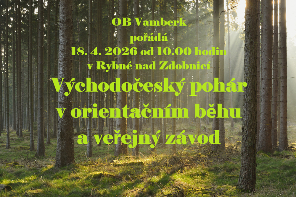 Oddíl OB Vamberk pořádá v sobotu 18. 4. 2026 veřejný závod Východočeského poháru v orientačním běhu. Centrum závodu bude v Rybné nad Zdobnicí na hřišti. Pro veřejnost je určena buď jednoduchá trať vyznačená fáborky pro kategorii HDR (rodiče s dětmi) nebo nenáročná trať bez fáborků pro kategorii P (příchozí). Na veřejný závod je možné přihlásit se předem na stránkách … Veřejný závod 18.4. 2026 v Rybné nad Zdobnicí
